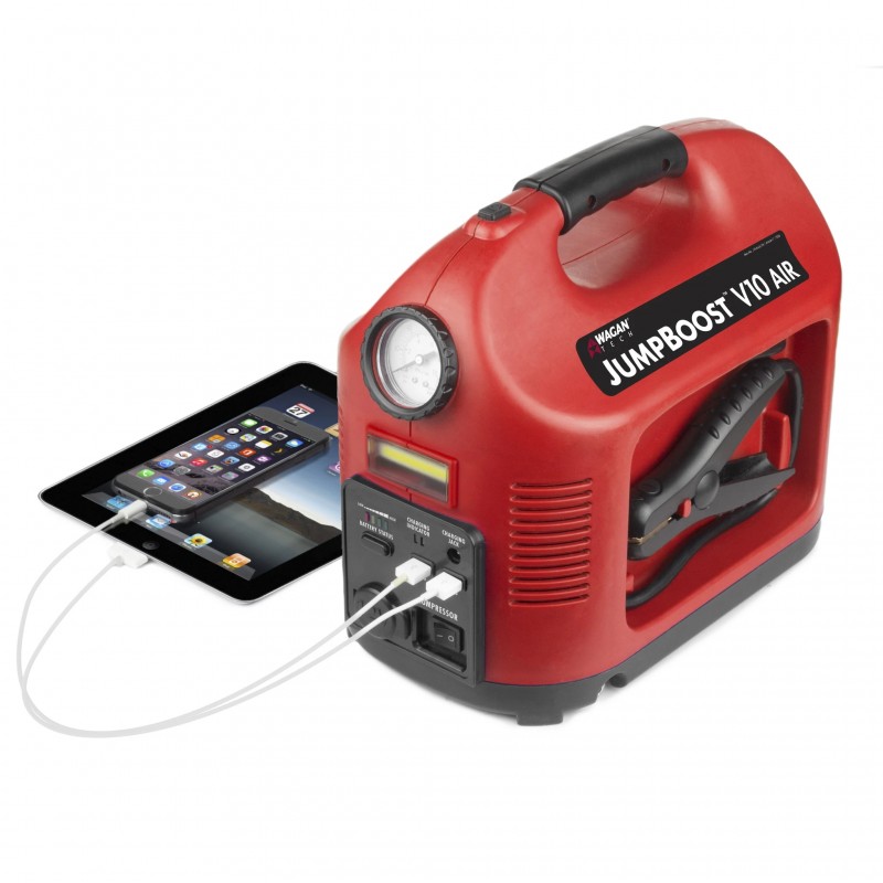 Con está batería de emergencia podrás cargar diferentes artículos de utilidad y de uso diario.Su batería de Ion de Litio puede cargar autos de asta V 10, su diseño permite que sea fácil de transportar y su material permite ser resistente y seguro para ti y para tu familia. Las protecciones de sobrecarga, sobre tensión, polaridad inversa y anti chispa (cortocircuito) están integradas para garantizar que pueda usar el dispositivo de forma segura incluso si no eres mecánico.¿Qué incluye el arrancador de baterías?- 1 Cargador de CA- 1 Cargador de CC- 1 ManualCaracterísticas adicionales:- Batería Ion de litio (LiCoO2)- Capacidad 50.0Wh- Amplificadores de pico: 700A- Amplificadores de arranque 400A- Cables de puente: 8AWG, abrazaderas de cobre- USB: 2, 5V, 2A compartido- Salida DC 12V- Incluye: